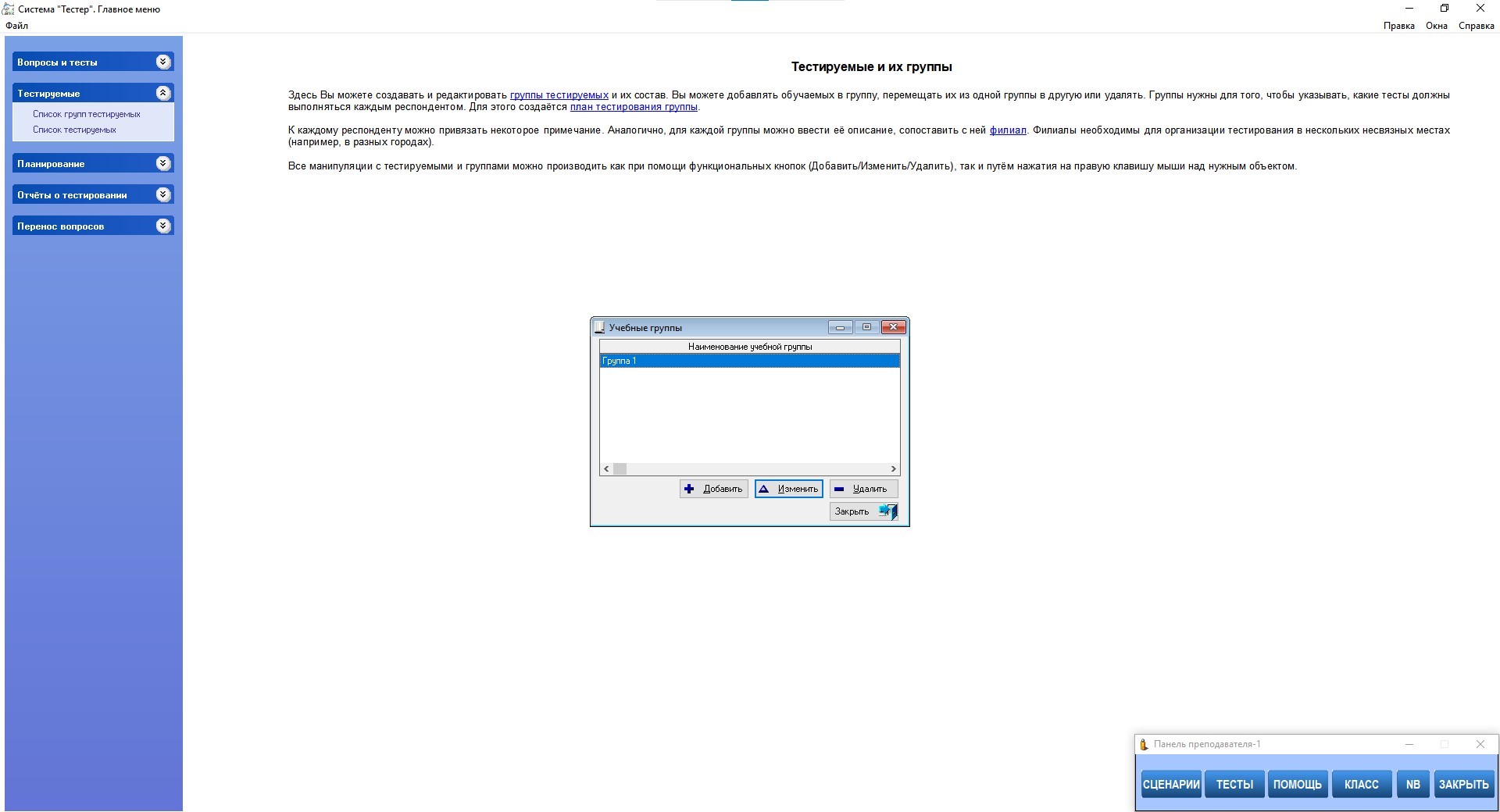 • управлять со своего рабочего места компьютерами студентов во время работы в локальной сети (проводить групповое тестирование, назначать задания всей группе или отдельным студентам, получать результаты тестирования, анализировать полученные результаты на основании статистики правильных ответов)