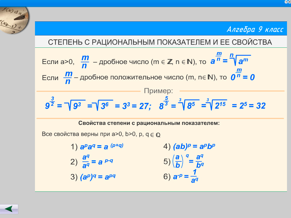- Степень с рациональным показателем и ее свойства