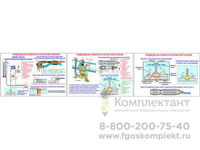 Плакаты ПРОФТЕХ «Подводная сварка и резка металлов» (3 шт., винил, 70х100) – наглядное пособие для изучения технологий подводной обработки металлов. Идеально подходит для образовательных учреждений и профессиональных курсов.