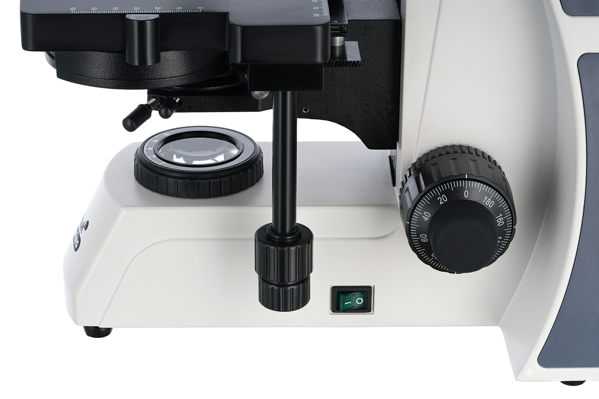 Предметный столик можно перемещать по двум направлениям. Препаратоводитель помогает точно установить образцы под объективом микроскопа. Яркий 5-ваттный светодиод освещает микропрепараты снизу, при этом свет проходит через фазовый конденсор («сухой»). Есть держатель фильтра. Яркость подсветки регулируется.