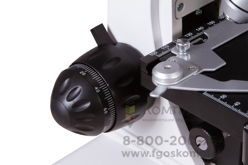 Широкопольные окуляры позволяют изучать протяженные образцы, дают 10-кратное увеличение и имеют диоптрийную коррекцию. Планахроматические объективы улучшают контрастность и цветопередачу, позволяют видеть больше деталей и убирают хроматизм. Кроме того, поле зрения становится более плоским, что особенно важно при профессиональных микроисследованиях. Вся оптика сделана из стекла и защищена антигрибковым покрытием. Объективы с большими увеличениями имеют пружинящие оправы, а со 100-кратным объективом можно использовать масляную иммерсию. Для настройки резкости используются ручки грубой и точной фокусировки.